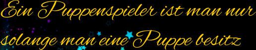 Liebe Marionette des Lebens Entfliehen ist vergebens. Alles mit Fäden verbundenFreiheit versinkt im DunkelnEntscheidungen sind beschränkt Weil an ihnen Dein Leben hängt. In der eigenen Hülle gefangen, Zaghaft um Gefühle bangen Leben voller Schranken, Ständig auf Schienen wanken, Gefühle sind mehr als ungewissDie Seele hat einen tiefen Riss Kommt ein Prinz in Dein Lebenschenkt Dir Liebe, will Dich ehrenFängt Dein Herz an zu schlagenUnd Du schneidest Deine Faden.Endlich ein Licht in der Dunkelheit Und die Hülle zerbricht …Die Seele findet die Freiheit ...Und die Marionette entwischt.