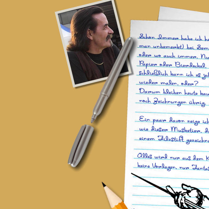 Ich habe wirklich nur ganz wenige Bilder behalten, aber eines ist sicher, es gibt einige Menschen die ganz sicher noch eines als Erinnerung haben, irgendwo in einer Schublade oder einem alten Schulheft.Heute zeichne ich kaum noch, außer für Kinder manchmal. Bildbearbeitung am PC zu machen ist genauso spannend und der große Vorteil ist, daß ich sie alle Aufheben und gleichzeitig verschenken kann.